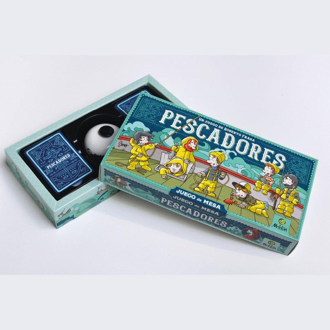 Los pescadores quieren salir de pesca. Hay pescadores de varios tamaños, cantidades, orígenes y colores. Si ves alguna característica común a todas las cartas, apurate a tocar la campana y decirlo en voz alta para poder quedarte con todas las cartas y juntar tu tripulación de pescadores.